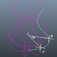 Top row: Examples of the joint rig of the hand and diagrams of how the point of intersection between the surface and hand can be computed as a rotation around the axis of revolution of the point of 2D intersection on the target Bezier Curve (described in greater detail in the report).