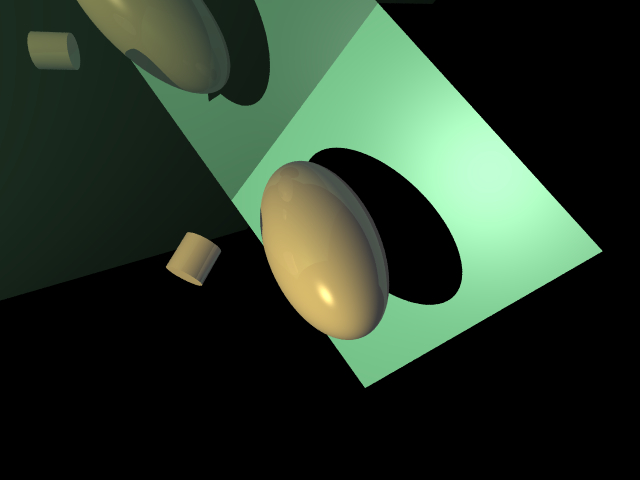 - Keywords: Ray tracer, Phong shading model, depth of field, antialiasing, area lighting, glossy reflection, soft shadow, compound objects
